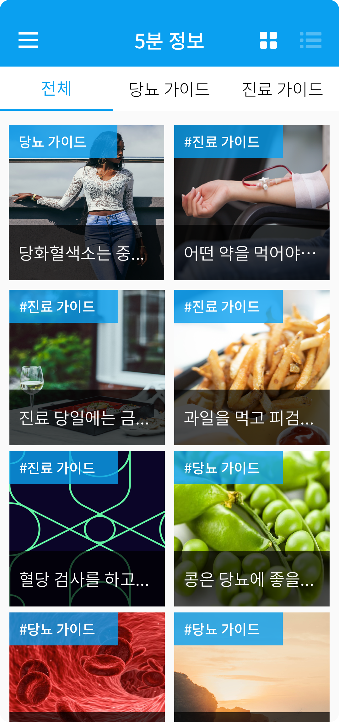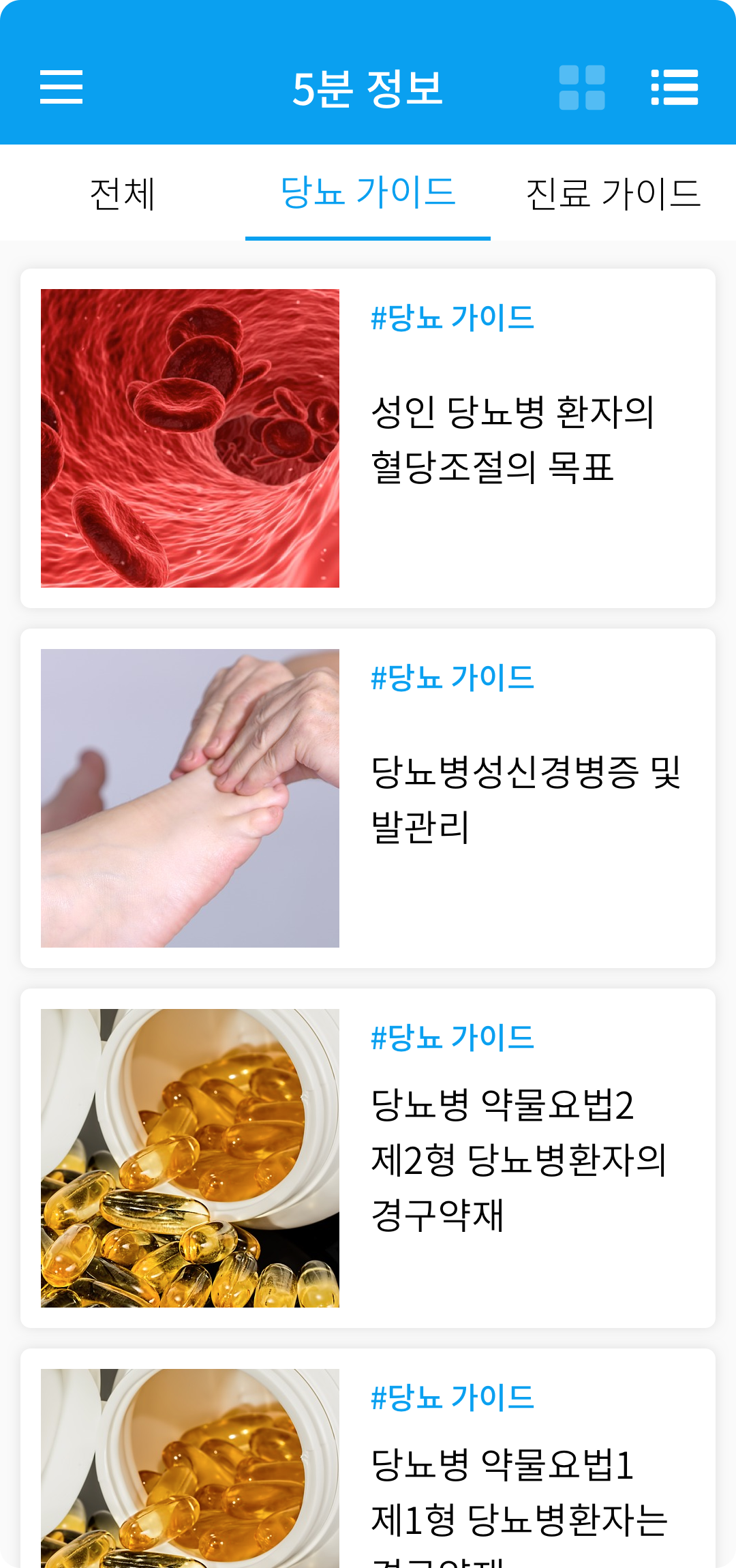 진료 후에 심화학습을 위한 당뇨병, 합병증, 검사 방법 등의 콘텐츠를 살펴보고 리터러시를 높입니다.