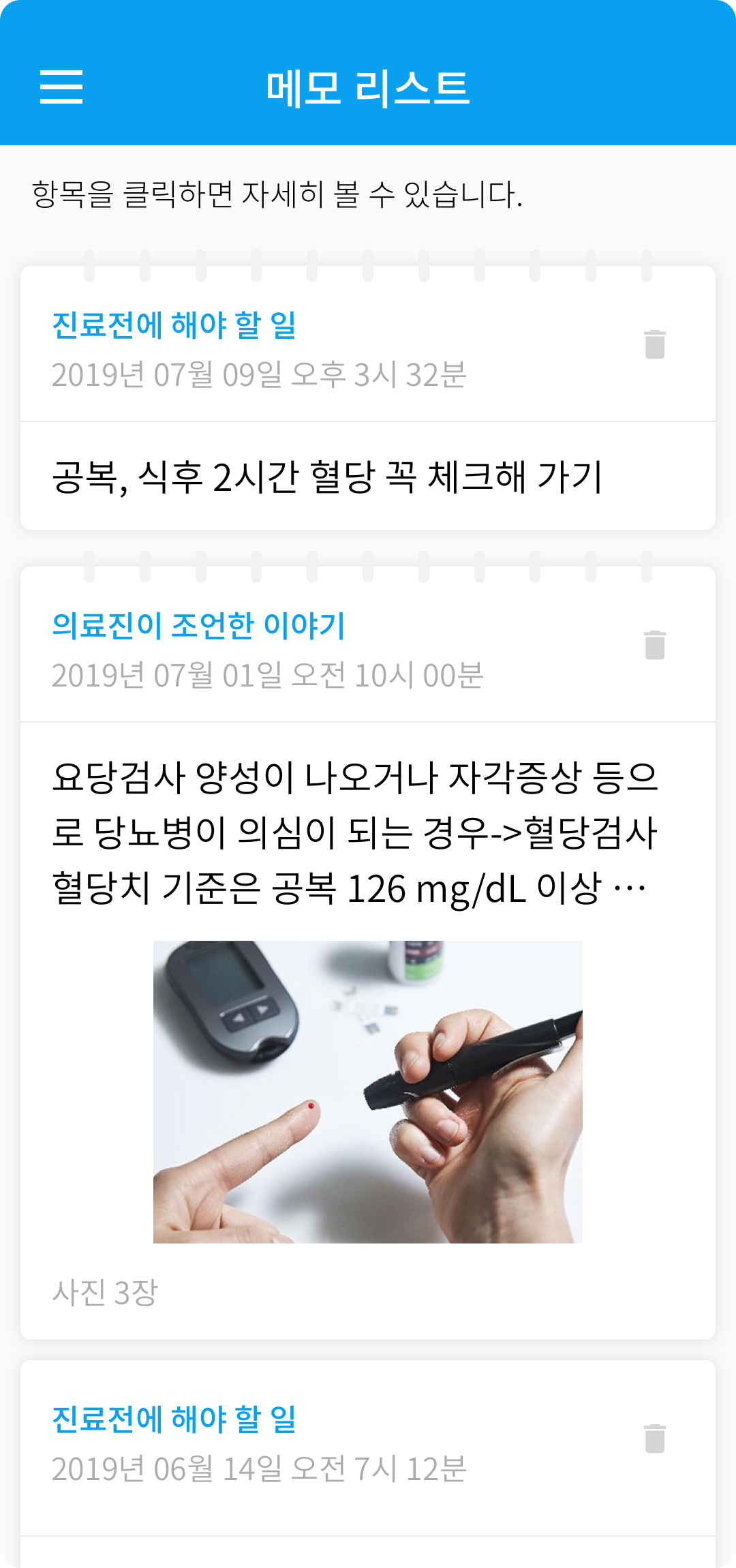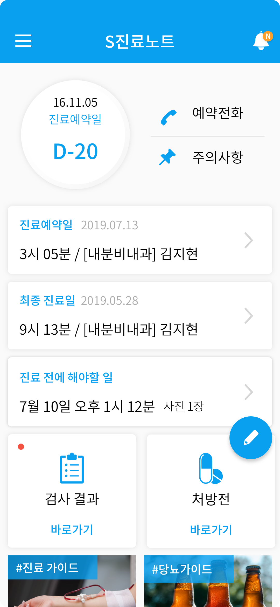자신의 스케쥴에 맞추어 진료를 예약하고, 진료 주의사항을 확인합니다. 의사에게 하고 싶은 말, 생활 중 특이사항을 기록합니다.